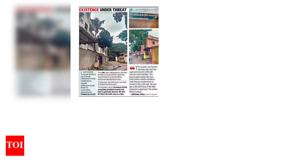 पुणे: मुंदवा येथील सर्वोदरया सहकारी गृहनिर्माण सोसायटीने २०१ 2017 च्या विकास योजनेत (डीपी) पुनर्वसनासाठी प्रस्तावित झोपडपट्टी म्हणून चुकीचा समावेश केला आहे, असे सांगितले की, ज्यांनी या विषयावर आक्षेप घेतला आहे अशा रहिवाशांच्या गटाने ज्यांनी त्यांची स्थिती चिरडून टाकली आहे आणि त्यांच्या निवासस्थानांना धोक्यात आणले आहे.रहिवाशांनी असा दावा केला की त्यांच्या गृहनिर्माण सोसायटीची जमीन जवळच्या झोपडपट्टीचा एक भाग म्हणून दर्शविली गेली होती आणि त्यापैकी बर्‍याच जणांना झोपडपट्टी रहिवासी म्हणून खोटी सूचीबद्ध केली गेली होती, जेणेकरून सोसायटीच्या दोन एकर आणि 25 गुंथा झोपडपट्टी पुनर्वसन प्राधिकरणाच्या (एसआरए) अंतर्गत येतील.एसआरएकडे तक्रार करण्यात आली आहे आणि अधिका said ्यांनी सांगितले की आवश्यक असल्यास या प्रकरणाची चौकशी केली जाईल.स्थानिक रहिवाशांनी सांगितले की, १ 1872२ च्या गुन्हेगारी कायद्याने ग्रस्त समुदायांसाठी ब्रिटिशांनी स्वतंत्रपणे वसाहती म्हणून स्थापन केलेल्या भारतातील reted२ वसाहतींपैकी एक सोसायटी आहे. १ 194 88 मध्ये, स्वातंत्र्यानंतर, तत्कालीन बॉम्बे सरकारने दु: खीपणा रद्द केला आणि मुंदवा सेटलमेंट पुनर्वसन क्षेत्र म्हणून घोषित केले. सध्या एकूण सात एकर जमीन तीन भागात विभागली गेली आहे. यात एक झोपडपट्टी, सर्वोदरया सोसायटीचा समावेश आहे ज्यात स्टँडअलोन घरे आहेत आणि तेथे सरकारची जमीन आहे. तथापि, 2017 डीपी संपूर्ण क्षेत्र झोपडपट्टी म्हणून दर्शविते.एसआरएकडे तक्रार करणारे सोसायटी रहिवासी बाल्कृष्ण जाधव म्हणाले, “संबंधित अधिका authorities ्यांनी आपल्या समाजाला झोपडपट्टी म्हणून सूचित करू नये. खरं तर, आम्ही एसआरए प्रकल्पासाठी आमच्या कथानकाचा प्रस्ताव ठेवल्याबद्दल अंधारात पडलो होतो. आमच्या समाजातील जमीनीचा समावेश असलेल्या कोणत्याही सर्वेक्षणात मी डीपीमध्ये वापरल्या जाऊ शकत नाही.20 ऑगस्ट रोजी झालेल्या तक्रारीत जाधव म्हणाले की एसआरएच्या प्रस्तावास मान्यता मिळावी म्हणून लाभार्थी यादी फुगली होती. जे लोक रहिवाशांनादेखील देखील समाविष्ट केले गेले आहेत, तसेच २०० 2008 नंतर जन्मलेल्या अल्पवयीन मुलांचा समावेश आहे. ते म्हणाले की, दशकांपूर्वी सोसायटीची स्थापना झाली आणि प्रत्येक सदस्यासाठी सुमारे २,500०० चौरस फूट क्षेत्राला मान्यता दिली होती. नागरी मंडळाने मंजूर केलेल्या लेआउटमध्ये असे दिसून आले आहे की सोसायटीच्या सदस्यांनी सुमारे 1,225-1,250 चौरस फूट बांधले आहेत. “एसआरए प्रस्ताव मंजूर झाल्यास आम्हाला एक 350 चौरस फूट घर मिळेल. संपूर्ण गोष्ट अन्यायकारक आहे, “जाधव पुढे म्हणाले.रहिवासी कल्पक सालुंके म्हणाले, “एसआरए आणि पुणे नगरपालिका महामंडळाने आमच्या तक्रारीची चौकशी करावी. 