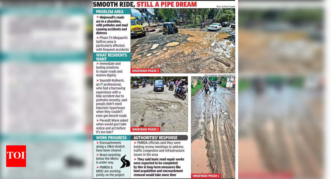 पुणे: खड्ड्यांसह रंगविलेल्या आणि चिखलाने छिद्र पाडलेल्या, हिंजवाडीतील रोड नेटवर्कने सामान्यत: हलगर्जीपणाचे क्षेत्र निराशेच्या आकर्षणामध्ये बदलले आहे, रहिवासी आणि प्रवासी खडबडीत मार्गांवर नेव्हिगेट करण्यासाठी झुंज देत आहेत, विशेषत: फेज 3 च्या मेगापोलिस केशर क्षेत्रात, जेथे अपघात वारंवार रेड फ्लॅग बनले आहेत.अगदी बारमाटीचे खासदार सुप्रिया सुले यांनी रविवारी या क्षेत्राच्या दयनीय रस्त्याच्या परिस्थितीचे प्रदर्शन करणारा एक व्हिडिओ सामायिक केला आणि ‘हिन्जेवाडी फेज 3 च्या मेगापोलिस केशर क्षेत्रातील रस्त्यांची भयंकर स्थिती’ पोस्ट केली, जिथे ती म्हणाली की गरीब रस्ते खराब झाल्यामुळे अनेक मोठे आणि किरकोळ अपघात झाले. रहिवासी आता या क्षेत्राच्या सन्मानाचे पुनरुज्जीवन करण्यासाठी रस्ते त्वरित आणि चिरस्थायी निराकरणाची मागणी करीत आहेत.चिखलीमध्ये राहणा Sar ्या आयटी व्यावसायिक सौरभ कुलकर्णीला एक दुचाकी चालकाचा अनुभव आला, जेव्हा त्याच्या दुचाकीने एका खड्ड्यात धडक दिली आणि त्याला दुखापत झाली. “माझ्या दुचाकीने एका खड्ड्यात धडक दिली आणि पुढे असमान रस्त्यावर घुसले तेव्हा मी एका मित्राशी संपर्क साधण्याच्या मार्गावर होतो. मला कट, स्क्रॅच आणि लेग स्प्रेनचा त्रास सहन करावा लागला. मला आश्चर्य वाटले की मूलभूत पायाभूत सुविधांसाठी नसल्यास आम्ही कर का देत आहोत? जेव्हा आम्हाला सजावट रस्ते मिळू शकत नाहीत तेव्हा आम्हाला फ्यूचरिस्टिक हायपरलूप्सची आवश्यकता नाही. आम्हाला चांगले रस्ते, सभ्य पदपथ, विश्वासार्ह सार्वजनिक वाहतूक आणि स्वच्छ हवा आणि पाणी द्या. आम्हाला एवढेच हवे आहे, “कुलकर्णी म्हणाले.फिटे (आयटी कर्मचार्यांसाठी फोरम) चे अध्यक्ष पवनजित माने म्हणाले की, महलंगे ते हिन्जवाडी या सहा-लेन महामार्गाच्या फक्त दोन लेन चिखल, वाळू आणि रेवळ कारणास्तव बांधकाम साहित्य घेऊन जाणा .्या रस्त्यावर वाहतुकीसाठी खुले होते. “हजारो कोटी रुपयांच्या मोठ्या प्रमाणात गृहनिर्माण प्रकल्प असूनही, बांधकाम व्यावसायिक सुरक्षेबद्दल नफ्याला प्राधान्य देत आहेत आणि रस्ते मोडतोड आणि चिखलाने भरलेले आहेत. हे दुर्लक्ष एकाधिक दररोज दुचाकी अपघातांसह, जीवनाचा दावा करीत आहे. उशीर होण्यापूर्वी सरकार कधी दखल घेईल आणि कृती करेल? “माने म्हणाली.पीएमआरडीएच्या अधिका said ्यांनी सांगितले की ते परिसरातील वाहतुकीची कोंडी आणि पायाभूत सुविधांच्या समस्यांकडे लक्ष वेधण्यासाठी दररोज आणि साप्ताहिक पुनरावलोकन बैठका घेत आहेत. “हे काम अल्प-दीर्घकालीन उपायांमध्ये विभागले गेले आहे. मूलभूत रस्ते दुरुस्तीची कामे नोव्हेंबरपर्यंत पूर्ण केली पाहिजेत, तर रस्त्याच्या रुंदीकरणासाठी जमीन अधिग्रहण, स्टॉर्मवॉटर 