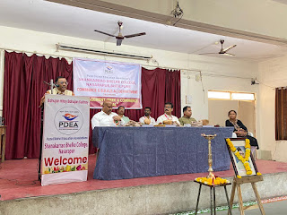 नसरापूर ;- व्यवसाय करताना आपली सकारात्मक मानसिकता असल्यास यश हमखास मिळते, व्यवसायासाठी अंगी जिद्द, चिकाटी असणे अत्यंत आवश्यक आहे. सुरुवातीला व्यवसाय सुरु केल्यानंतर १००० दिवस त्या व्यवसायातून किती नफा व तोटा होतो याकडे लक्ष न देता तो व्यवसाय टिकविण्याचा प्रयत्न केला पाहिजे असे मत प्रा.खुणे यांनी व्यक्त केले. शंकरराव भेलके महाविद्यालय नसरापूर येथील वाणिज्य व बी.बी.ए.(सी.ए.) विभागांतर्गत शनिवार दिनांक २४ फेब्रुवारी ते सोमवार दिनांक ४ मार्च २०२४ या कालावधीत आयोजित “व्यवस्थापन सप्ताह” कार्यक्रमाच्या उद्घाटन प्रसंगी ते बोलत होते. यावेळी अध्यक्षस्थानी महाविद्यालयाचे प्राचार्य डॉ.तुषार शितोळे, डॉ.राजेंद्र सरोदे उपस्थित होते. याप्रसंगी डॉ.सोनवणे सर यांनी व्यवसाय करायचा असेल तर जो व्यक्ती आनंदी, उत्साही आहे अशीच व्यक्ती व्यवसायात यशस्वी होते. व्यवसाय कोणता निवडावा हे ठरविताना आपला छंद, आवड या गोष्टींकडे विशेष लक्ष दिले पाहिजे. आवड असेल तर माणूस कमीत कमी दिवसात यशस्वी होतो.