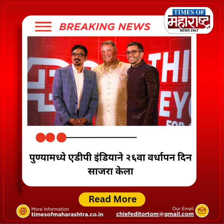 पुणे,११ ऑगस्ट २०२५ -एडीपी इंडिया, भारतातील मानव संसाधन व्यवस्थापन सॉफ़्टवेअर आणि सेवा प्रदान करणारी एक अग्रगण्य कंपनीने पुण्यातील जेडबल्यू मॅरियेटमध्ये कंपनीचा २६वा वर्धापन दिन अतीशय उत्साहात आणि दिमाखात साजरा केला. इतक्या वर्षांचा यशस्वीतेचा स्मर्णार्थ आयोजित केलेल्या या कार्यक्रमात १,३०० पेक्षा अधिक एडीपी सहयोगी तर उपस्थित होतेच, पण त्यांना साथ देण्याकरिता जागतिक पटलावरील एडीपी कार्यालयांमधून स्मार्ट कंप्लायान्स सोल्युशन्स ॲन्ड ह्युमन रिसोर्स आऊटसोर्सिंगचे कार्यकारी उपाध्यक्ष श्री. ब्रायन मिशल आणि एडीपी टोटल सोर्स®️ चे वरीष्ठ उपाध्य्क्ष आणि महाव्यवस्थापक श्री. मौहोम्मद फ़हमी देखील उपस्थित होते.