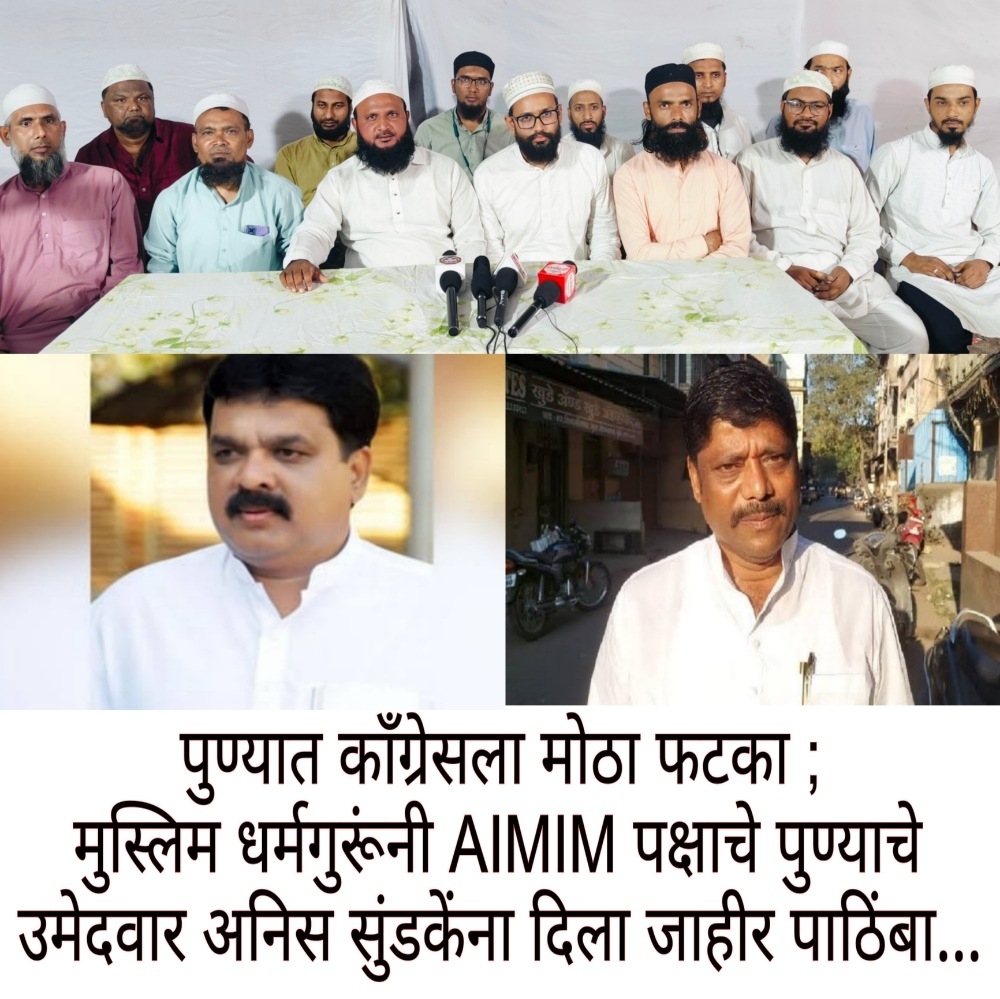 पुण्यात काँग्रेसला मोठा फटका ; मुस्लिम धर्मगुरूंनी AIMIM पक्षाचे पुणे लोकसभेचे उमेदवार अनिस सुंडकेंना दिला जाहीर पाठिंबा…