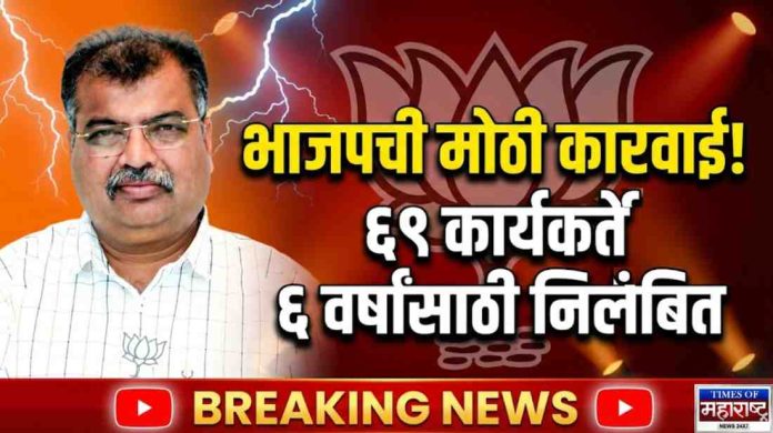 Times Of Maharashtra Desk:राज्यात नुकत्याच पार पडलेल्या स्थानिक स्वराज्य संस्थांच्या निवडणुकांनंतर भाजपने पक्षशिस्त भंग करणाऱ्या कार्यकर्त्यांविरोधात मोठी कारवाई केली आहे. पक्षाच्या अधिकृत उमेदवारांविरोधात अपक्ष किंवा इतर पक्षांच्या माध्यमातून निवडणूक लढवणाऱ्या शहरातील तब्बल ६९ कार्यकर्त्यांना सहा वर्षांसाठी पक्षातून निलंबित करण्यात आले आहे.ही कारवाई भाजप महाराष्ट्र प्रदेशाध्यक्ष रवींद्र चव्हाण यांच्या आदेशानुसार करण्यात आली असून, यासंदर्भातील अधिकृत पत्रही समोर आले आहे. पत्रावर प्रदेशाध्यक्षांची स्वाक्षरी असून निलंबित करण्यात आलेल्या सर्व ६९ जणांची नावे नमूद करण्यात आली आहेत.