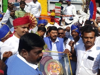 यावेळी रामदास आठवले यांना दलित पॅंथर चे राष्ट्रीय अध्यक्ष यशवंत नडगम यांच्या वतीने सन्मानचिन्ह आणि पुष्पगुच्छ देऊन स्वागत करण्यात आले. तसेच या रथामध्ये बाबासाहेब आंबेडकर यांची प्रतिमा देखील बसविण्यात आले होती. या रथाचा उद्देश म्हणजे भीमा कोरेगाव विजयस्तंभा पर्यंत नागरिक पोहचू शकले नाही तर त्यांना या रथामध्ये असलेले विजयस्तंभ आणि बाबासाहेब आंबेडकर यांना अभिवादन करता येईल. या हेतूने दलित पॅंथरचे राष्ट्रीय अध्यक्ष यशवंत नडगम यांनी यासाठी प्रयत्न केले होते. आणि या रथात असलेले विजायस्तंभाचे अनेक नागरिकांनी लाभ घेतला, आणि अभिवादन केले.