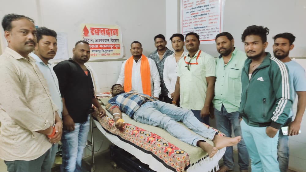 भारतीय जनता युवा मोर्चाचे महाराष्ट्र प्रदेश अध्यक्ष विक्रांत दादा पाटील यांच्या वाढदिवसानिमित्त आज मलकापूर येथे दिनांक 12/ 7/ 2022 रोजी सकाळी 11:30 वाजता भारतीय जनता युवा मोर्चाचे बुलढाणा जिल्हा उपाध्यक्ष नानाभाऊ येशी यांच्या नेतृत्वात भव्य रक्तदान शिबिर आयोजित करण्यात आले होते भाजप युवा मोर्चाच्या 13 कार्यकर्त्यांनी रक्तदान करून भाऊंना वाढदिवसाच्या हार्दिक शुभेच्छा दिल्या.
