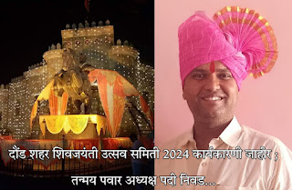 दौंड :- दौंड शहर शिवजयंती उत्सव समिती 2024 कार्यकारणी जाहीर झाली असून यंदा अध्यक्ष पदी तन्मय (सनी) सुनील पवार यांची निवड करण्यात आली आहे.