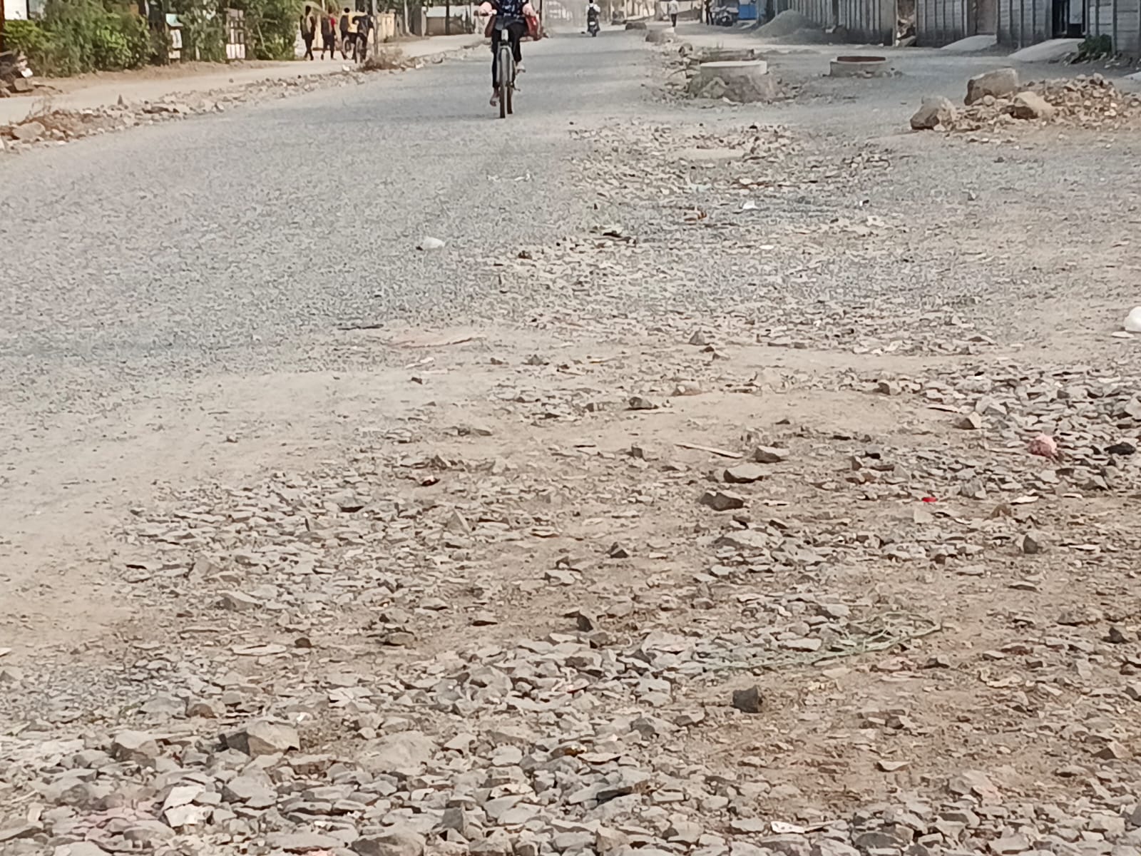सध्या या रस्त्यावर मोठ्या प्रमाणात खडी पसरलेली असून अनेक ठिकाणी खड्डे पडले आहेत. त्यामुळे दुचाकी, सायकलस्वार व पादचाऱ्यांना मोठा त्रास सहन करावा लागत आहे. लहान मुले, महिला व ज्येष्ठ नागरिकांसाठी हा मार्ग अधिक धोकादायक ठरत आहे. खडीवरून वाहने घसरत असल्याने अपघाताचा धोका देखील वाढला आहे.