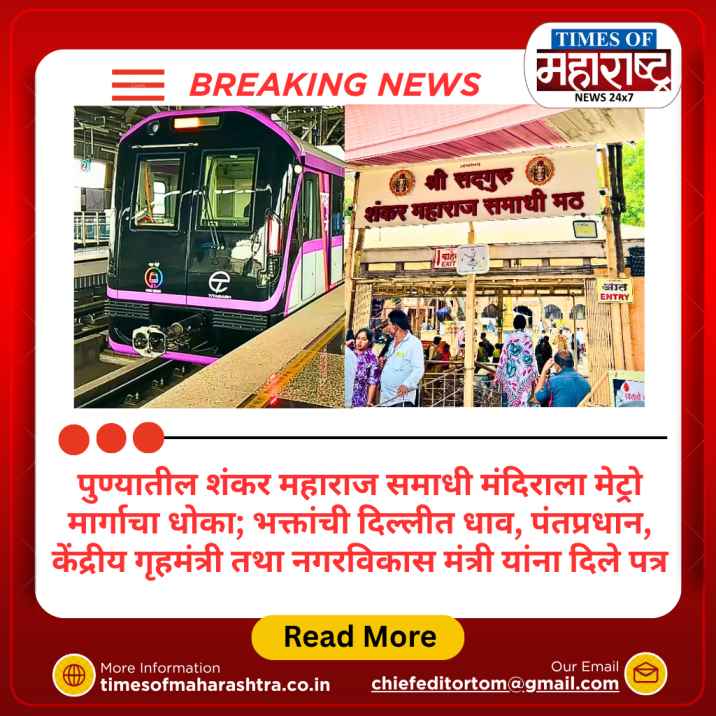 पुणे: पुण्यातील सुप्रसिद्ध संत श्री शंकर महाराज समाधी मंदिरच्या संरक्षणासाठी भक्त समितीने केंद्रीय पातळीवर तातडीचा पत्रव्यवहार केला आहे. समितीच्या वतीने पंतप्रधान नरेंद्र मोदी, गृहमंत्री अमित शाह आणि केंद्रीय गृहनिर्माण व नगरविकास मंत्री श्री मनोहर लाल खट्टर यांना दिल्लीतील कार्यालयात जाऊन पत्र देऊन विनंती केली आहे की, मेट्रो मार्ग मंदिराच्या खाली जाऊ नये. भक्त समितीचे अध्यक्ष आनंद रेखी यांनी सांगितले की,