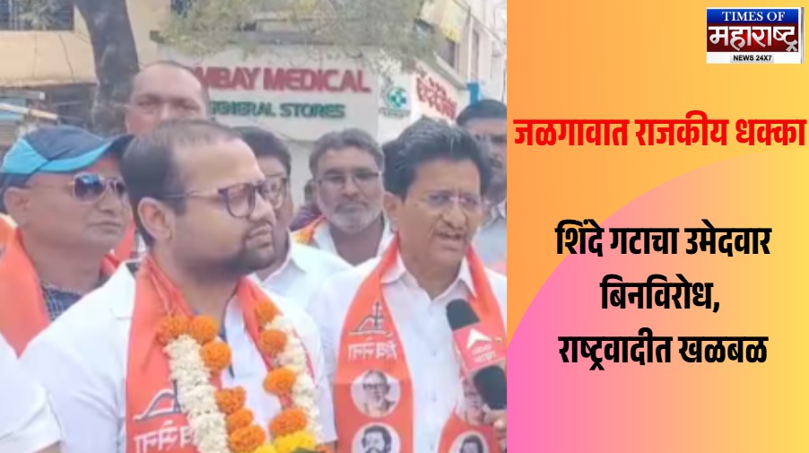 राज्यात भाजपचे कल्याण-डोंबिवलीत 3, पनवेलमध्ये 1 आणि धुळ्यात 2 उमेदवार बिनविरोध निवडून आले आहेत. त्यानंतर आता जळगावात शिवसेना (शिंदे गट) चा उमेदवार बिनविरोध झाल्याने महायुतीला मोठा दिलासा मिळाला आहे. आमदारपुत्र बिनविरोध झाल्याने राजकीय वर्तुळात आश्चर्य व्यक्त केले जात आहे.
