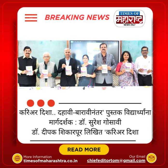 पुणे : आजच्या काळात विद्यार्थ्यांनी दूरदृष्टी ठेवून विविध विषयात कौशल्यविकास साधणे आवश्यक आहे. या करिता डॉ. दीपक शिकारपूर लिखित ‘ करिअर दिशा.. दहावी-बारावीनंतर’ हे पुस्तक अत्यंत उपयुक्त आहे. मातृभाषेतून लिखाण हा दृष्टीकोन अभिमानास्पद असून करिअरमधील विविध क्षेत्रांविषयी तज्ज्ञ लेखकांनी मांडलेली माहिती विद्यार्थ्यांना उपयुक्त ठरणार आहे, असे प्रतिपादन सावित्रीबाई फुले पुणे विद्यापीठाचे कुलगुरू डॉ. सुरेश गोसावी यांनी केले.