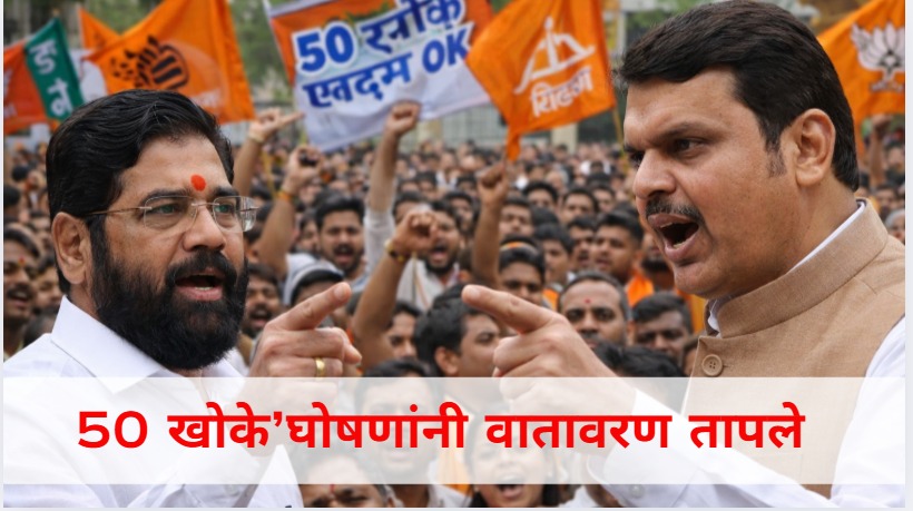 आतापर्यंत ठाकरे गटाकडून या घोषणांचा वापर शिंदे गटावर टीका करण्यासाठी होत होता. मात्र, मित्रपक्षातील भाजपच्या कार्यकर्त्यांकडूनच अशा घोषणा दिल्या गेल्याने शिंदे सेनेचे कार्यकर्ते संतप्त झाले. त्यांनीही भाजपविरोधात जोरदार घोषणाबाजी करत प्रत्युत्तर दिले. हा सगळा प्रकाराचा व्हिडीओ सध्या सोशल मीडियावर वेगाने व्हायरल होत असून, मतदानाला अवघे काही तास शिल्लक असताना घडलेल्या या घटनेने राजकीय वातावरण ढवळून निघाले आहे.दरम्यान, शिवसेना-भाजप जागावाटपात वॉर्ड क्रमांक 173 शिंदे सेनेला सुटला होता. त्यानुसार शिवसेनेने पूजा कांबळे यांना उमेदवारी दिली. मात्र भाजपच्या शिल्पा केळुस्कर यांनी भाजपचा कलर झेरॉक्स असलेला एबी फॉर्म जोडून उमेदवारी अर्ज दाखल केला होता. विशेष म्हणजे त्यांचा अर्ज वैध ठरल्याने शिंदे गटाला नाईलाजाने या वॉर्डमध्ये मैत्रीपूर्ण लढतीला सामोरे जावे लागले. प्रचार सुरू होताच ही ‘दोस्तीतली कुस्ती’ उघडपणे समोर आली आहे.