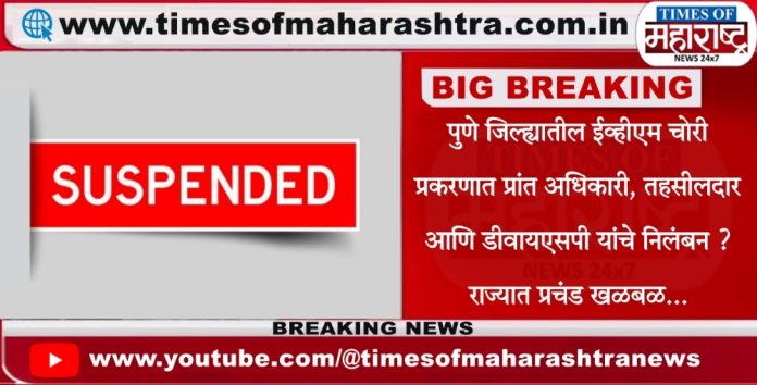 पुणे जिल्ह्यातील ईव्हीएम चोरी प्रकरणात पुरंदरचे प्रांत अधिकारी वर्षा लांडगे-खत्री, तहसीलदार विक्रम रजपूत, डीवायएसपी तानाजी बरडे यांच्या निलंबनाचे आदेश ; राज्यात प्रचंड खळबळ…