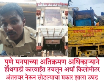 पुणे महानगरपालिका अतिक्रमण विभागाचे अधिकारी कारवाईत केलेल्या हाथगाड्यांची करतायेत मधेच सोड ? हाथगाडी कारवाईत उचलून अर्धा किलोमीटर अंतरावर नेऊन सोडण्याचा प्रकार झाला उघड ; पहा व्हिडीओ…