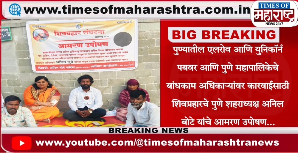 पुण्यातील एलरोव पब आणि युनिकॉर्न पब वर आणि पुणे महापालिकेचे बांधकाम अधिकाऱ्यांवर कारवाई करण्यासाठी शिवप्रहारचे पुणे शहर अध्यक्ष अनिल बोटे यांचे पुणे मनपा बाहेर आमरण उपोषण…