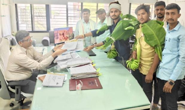 या मागणीसाठी संघटनेच्या शिष्टमंडळाने जिल्हाधिकारी कार्यालयात भेट देत निवेदन सादर केले. यावेळी कार्यकर्त्यांनी कांदा, मका आणि केळीची पिके गळ्यात टांगून अनोख्या पद्धतीने आंदोलन करत प्रशासनाचे लक्ष वेधले.