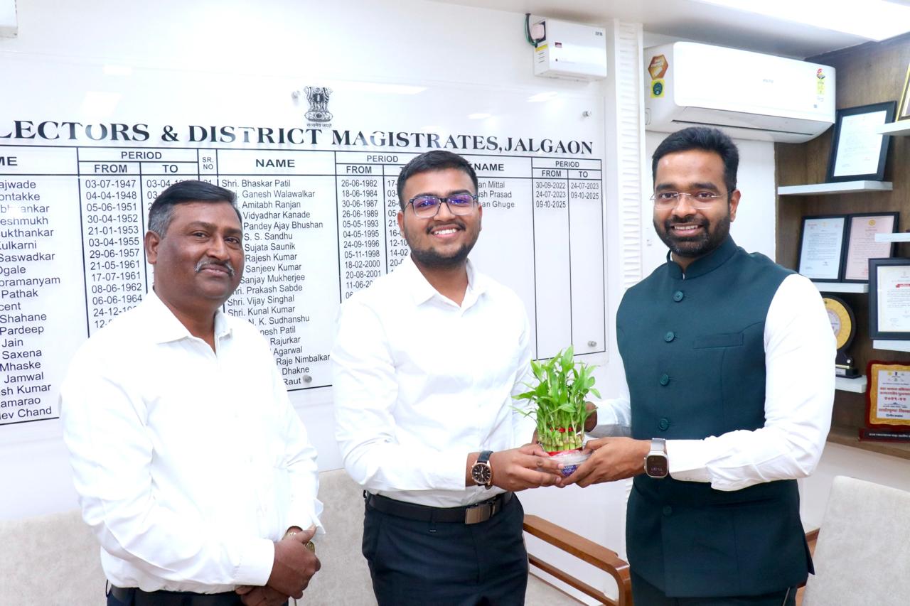 जळगाव (प्रतिनिधी विनोद पवार) : जळगाव जिल्ह्याचे आदरणीय जिल्हाधिकारी श्री. रोहन घुगे (IAS) यांच्या हस्ते जळगाव जिल्हाधिकारी कार्यालयात यूपीएससी २०२५ परीक्षेत उल्लेखनीय यश संपादन केलेल्या कु. शिवम सीमा राजेंद्र वखरे (डोंबिवली निवासी, मूळगाव – बेटावद बुद्रुक, ता. जामनेर, जि. जळगाव) यांचा सन्मानपूर्वक सत्कार करण्यात आला.