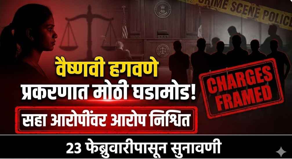 Times Of Maharashtra डेस्क: संपूर्ण महाराष्ट्राला हादरवून सोडणाऱ्या वैष्णवी हगवणे मृत्यू प्रकरणात महत्त्वाची न्यायालयीन घडामोड घडली आहे. या प्रकरणातील सहाही आरोपींवर सत्र न्यायालयाने आरोप निश्चित केले असून २३ फेब्रुवारीपासून खटल्याची नियमित सुनावणी सुरू होणार आहे. त्यामुळे आता या प्रकरणाकडे राज्याचे लक्ष लागले आहे.