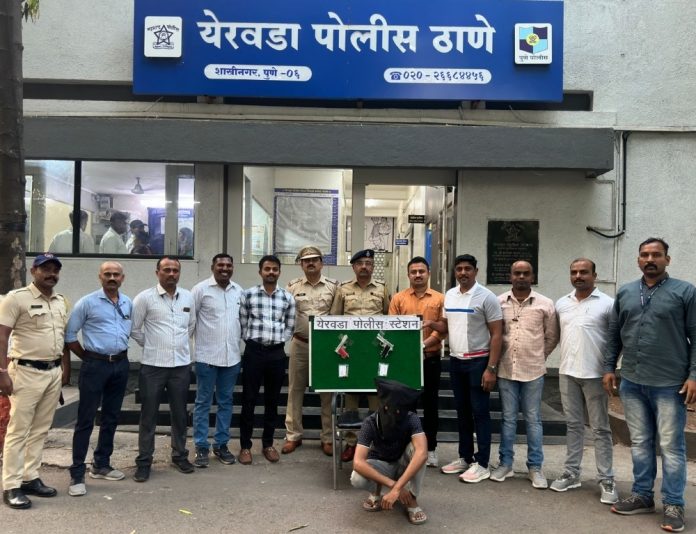 सदर बाबत येरवडा पोलीसांनी दिलेल्या माहितीनुसार तपास पथकाचे पोलीस हवालदार कैलास डुकरे व पोलीस अंमलदार सुशांत भोसले हे दि.१७/०४/२०२४ रोजी गुन्हेगार चेक करीत असताना त्यांना त्यांच्या खास बातमीदारामार्फत बातमी मिळाली की, येरवडा पोलीस स्टेशनच्या रेकॉर्डवरील गुंड अभिषेक खोंड याच्याकडे पिस्टल असून तो वडगावशेरी भागातील नदीपात्राजवळील मोकळ्या जागेत कोणाचीतरी वाट बघत थांबलेला आहे. अशी माहिती मिळाल्याने तपास पथकाचे पोलीस उप-निरीक्षक स्वप्नील पाटील यांनी तपास पथकाचे स्टाफसह मिळालेल्या बातमीच्या ठिकाणी जाऊन येरवडा पोलीस ठाण्याचे वरिष्ठ पोलीस निरीक्षक संतोष पाटील व पोलीस निरीक्षक गुन्हे राहुल जगदाळे यांच्या मार्गदर्शनाप्रमाणे अग्नीशस्त्र बाळगणाऱ्यास ताब्यात घेऊन त्याच्याकडून एक पिस्टल व २ राऊंड मिळून आले. सदरबाबत दि. १८/०४/२०२४ रोजी येरवडा पोलीस स्टेशन येथे गुर नं २२०/२०२४ भारतीय हत्यार कायदा ३ (२५) महाराष्ट्र पोलीस अॅक्ट कलम ३७ (१) सह १३५ अन्वये गुन्हा दाखल करण्यात आला असून आरोपीस अटक करण्यात आली आहे. पोलीस कस्टडीमध्ये तपासादरम्यान त्याचेकडून आणखी एक पिस्टल व २ राऊंड हस्तगत करण्यात आले आहे असे आरोपीकडून एकूण ६५,५००/- रु किंमतीचे एकूण २ पिस्टल व ४ राऊंड हस्तगत करण्यात आले आहेत.